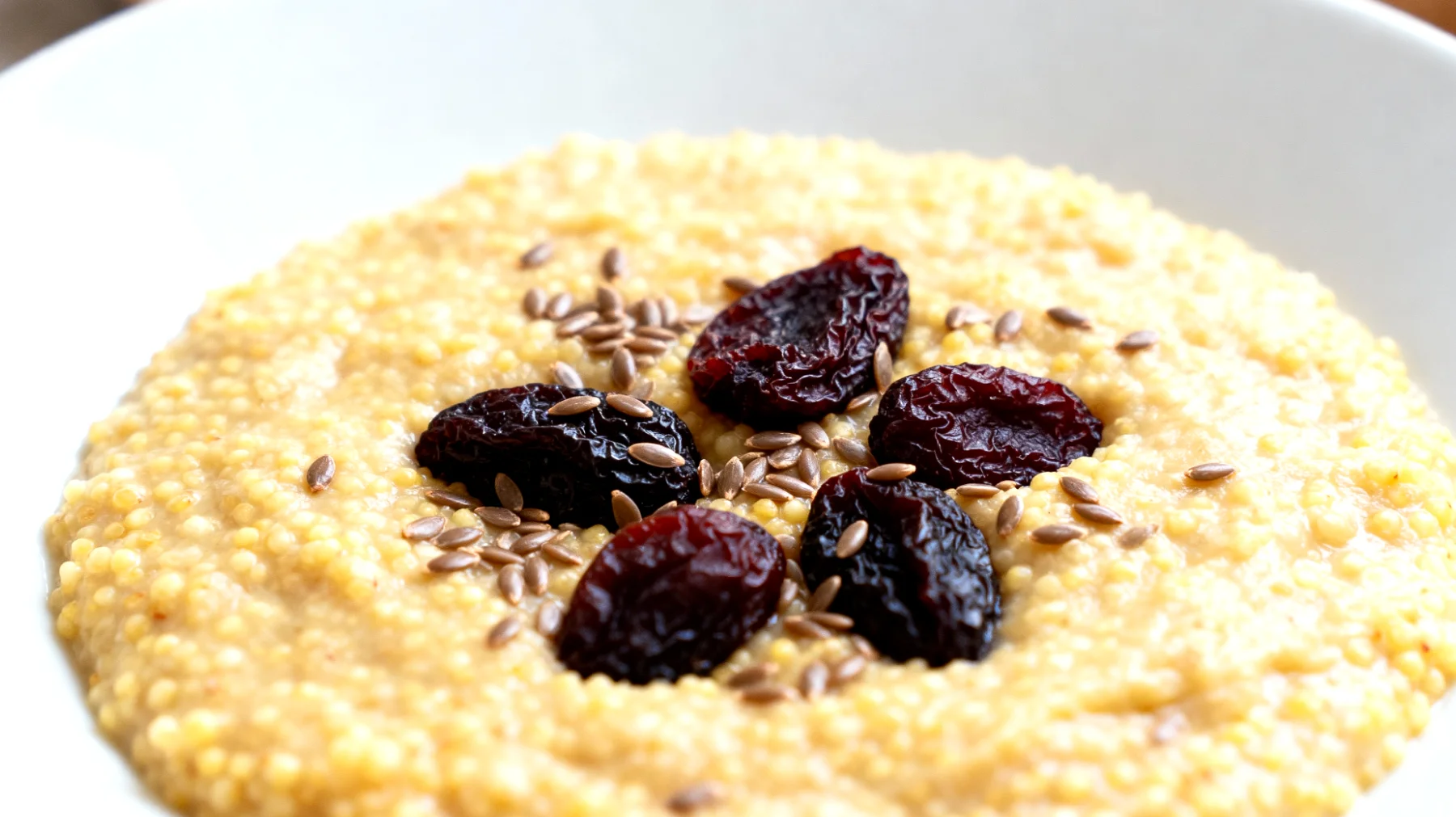 La cottura del miglio in acqua o bevanda vegetale per 15-20 minuti permette la gelatinizzazione degli amidi, migliorandone la digeribilità. L’aggiunta di 2-3 prugne secche apporta approssimativamente 3-4 grammi di fibre, mentre un cucchiaio di semi di lino macinati fornisce circa 2-3 grammi di fibre e circa 2 grammi di omega-3. Si tratta di quantità moderate che possono integrarsi bene in una dieta equilibrata.