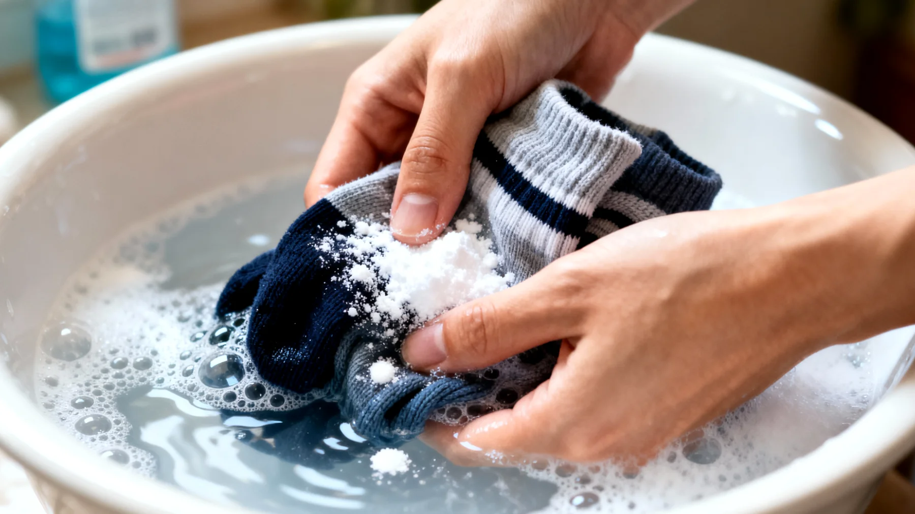 Per calzini particolarmente problematici, consigliamo un pretrattamento specifico. Prepara una soluzione in una bacinella con acqua tiepida, aggiungendo circa tre cucchiaini di bicarbonato per ogni litro d’acqua. Immergi completamente i calzini e lasciali in ammollo per 30-40 minuti prima di procedere con il normale lavaggio in lavatrice.