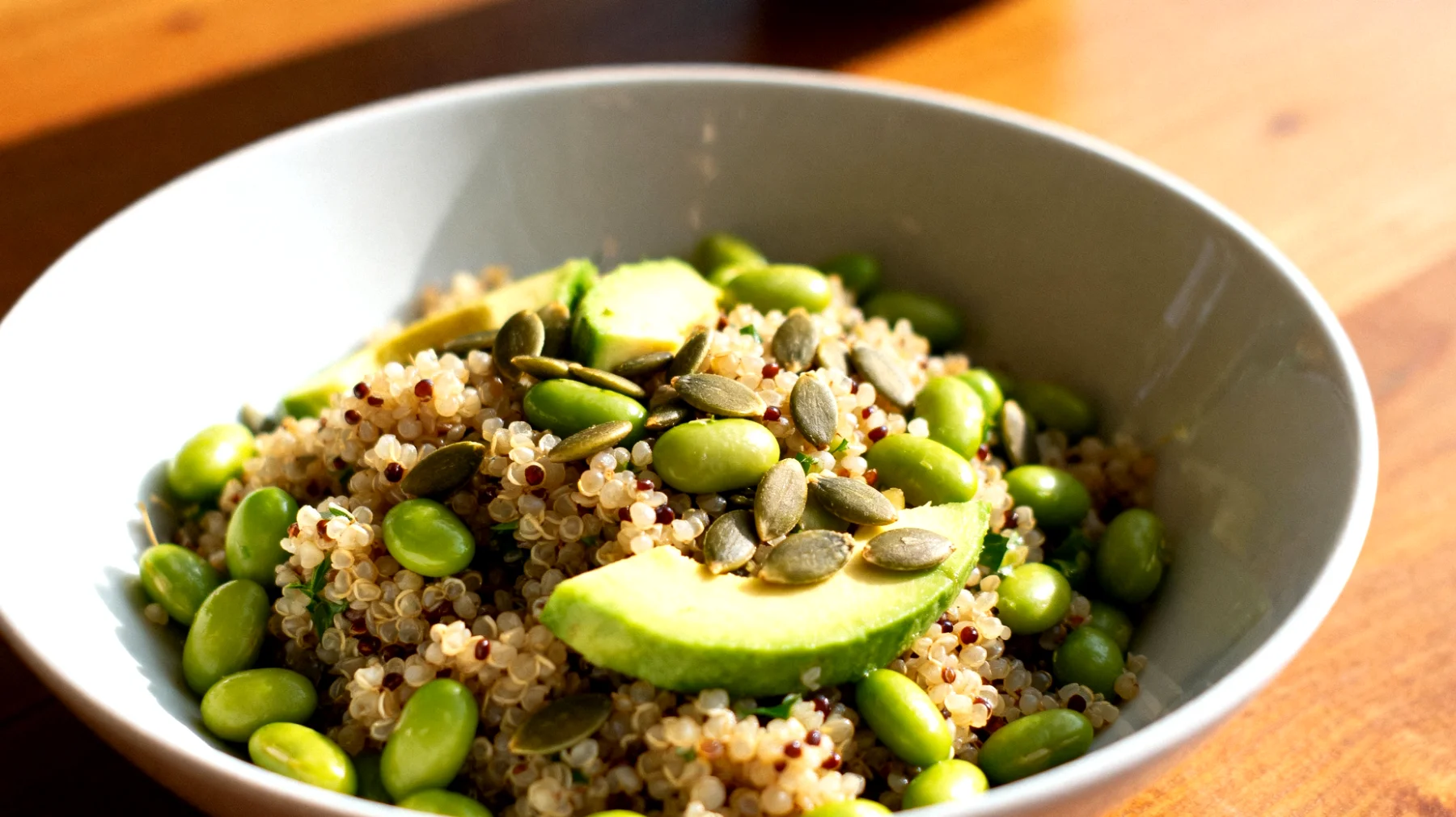 La quinoa è uno dei pochi pseudo-cereali a contenere tutti e nove gli aminoacidi essenziali, con circa 8 grammi di proteine per 100 grammi di prodotto cotto. Quando combinata con gli edamame, si crea una sinergia proteica eccezionale: questi giovani fagioli di soia apportano non solo proteine ma anche lecitina, un fosfolipide riconosciuto come componente strutturale delle membrane nervose, supportando la funzione della memoria.