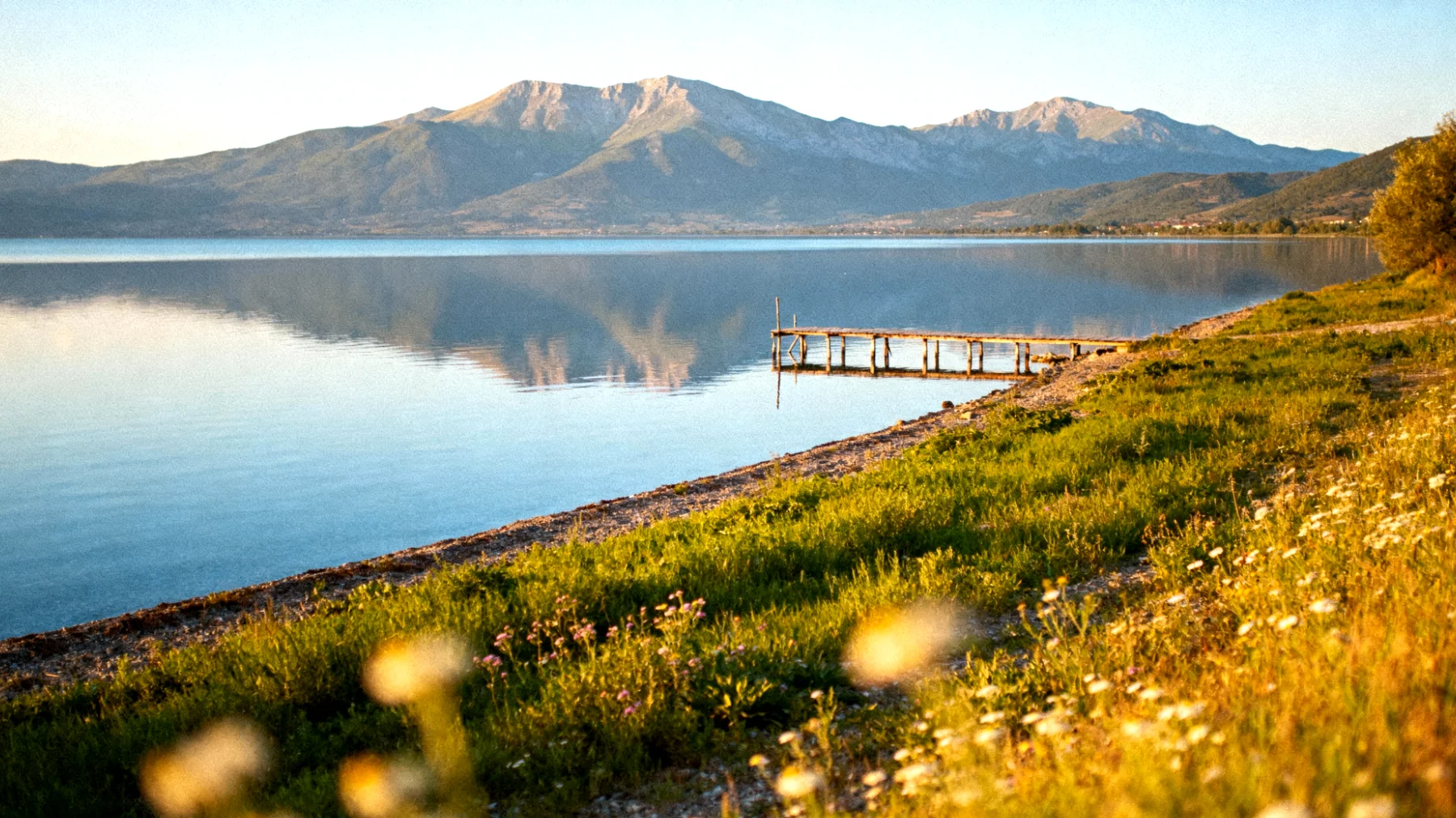 Agios Achillios, un’isoletta nella Piccola Prespa collegata alla terraferma da un ponte pedonale di legno lungo circa un chilometro, offre un’esperienza unica. Attraversarlo in gennaio, con il lago che si estende intorno a voi e il vento che sussurra tra le canne palustri, è un momento di pura magia. Sull’isola troverete le rovine di una basilica bizantina del X secolo, testimonianza di un passato glorioso quando questo era un importante centro religioso.