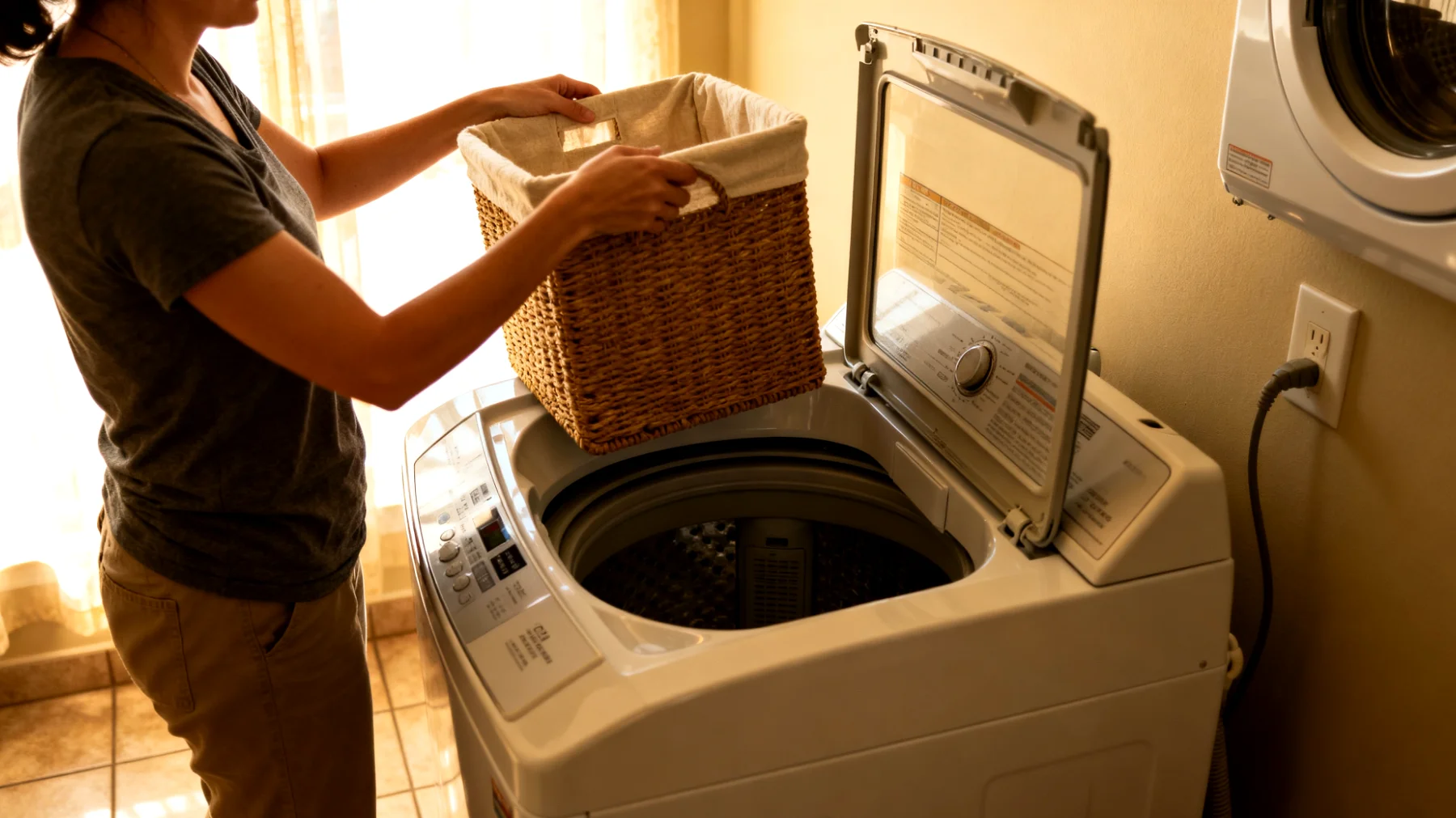 Il piano superiore della lavatrice tende a diventare, in molte case, una superficie di appoggio casuale. Magliette mezze bagnate, bucato appena uscito da separare, detersivi lasciati lì dopo l’uso. È una tentazione comprensibile, ma questo crea disordine visivo e può danneggiare a lungo andare la superficie smaltata.