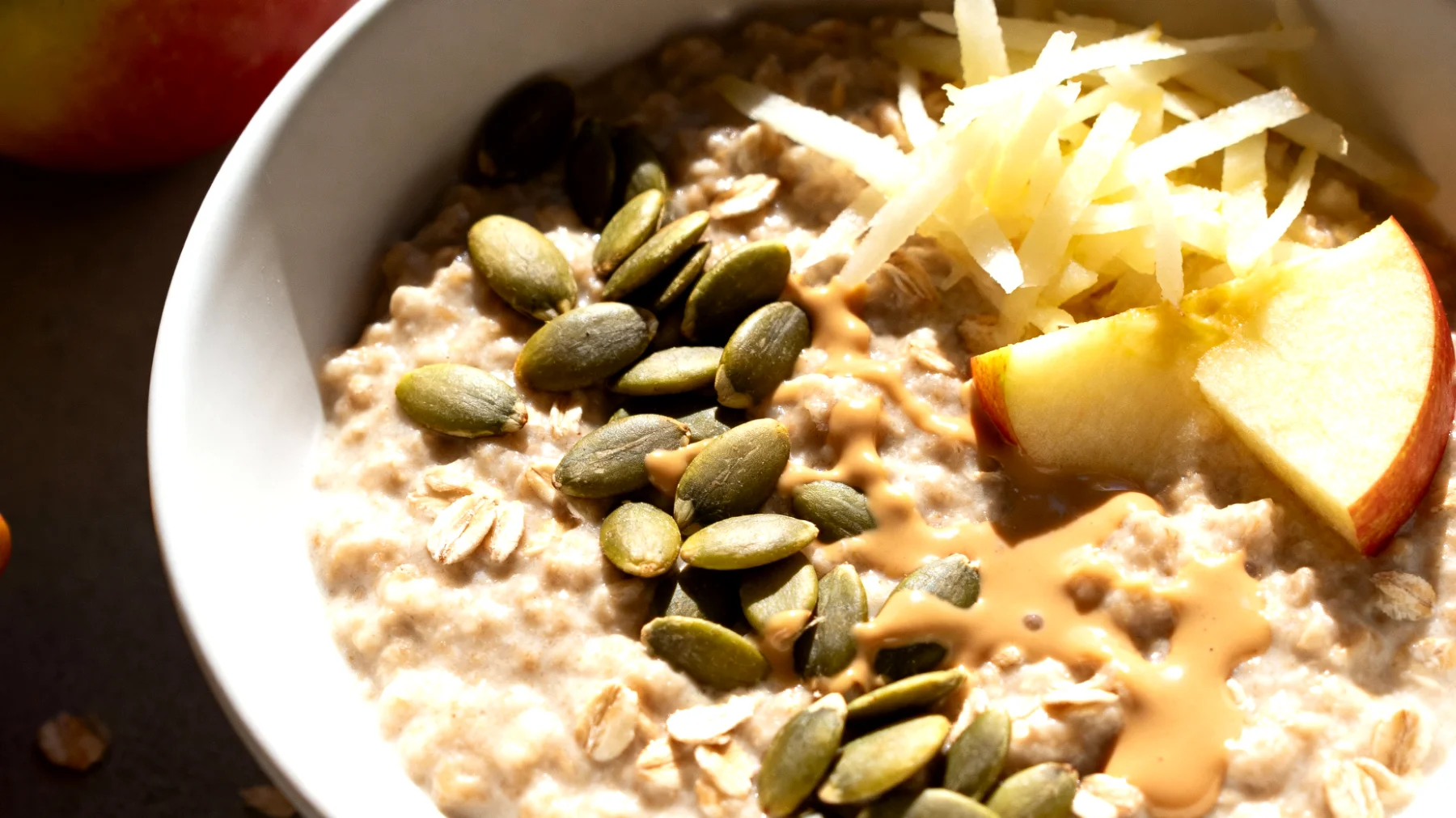 La preparazione corretta fa la differenza. Cuocere l’avena in acqua o bevanda vegetale per 5-7 minuti a fiamma media garantisce la consistenza ideale. Aggiungere uno o due cucchiai di tahini ancora a porridge caldo, mescolando bene per ottenere una texture cremosa e omogenea. Incorporare poi un cucchiaio di semi di zucca e grattugiare la mela fresca direttamente nella bowl prima di servire. L’importante è evitare qualsiasi zucchero aggiunto: la dolcezza della mela è più che sufficiente.